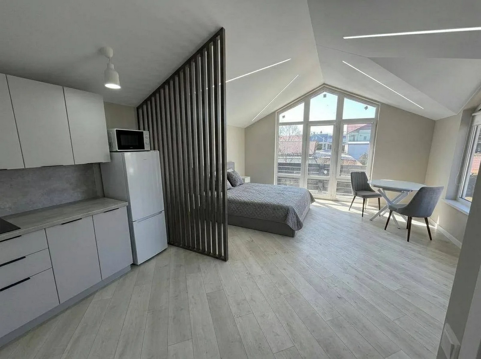 Имеет террасу, гостиную и спальню с приятным интерьером.